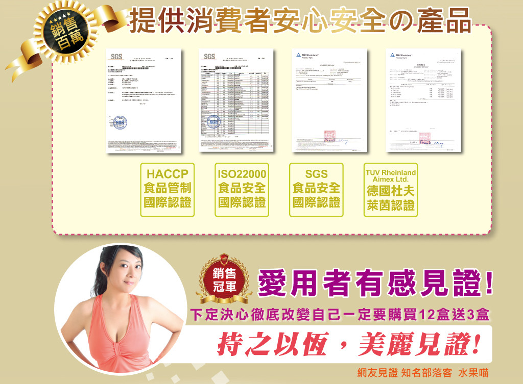 ‧使用期間建議搭配【特濃青木瓜豐盈膠囊】、【鑽透膠原蛋白美顏粉】或【活力美胸精華按摩使用】,使目標更快速達成。